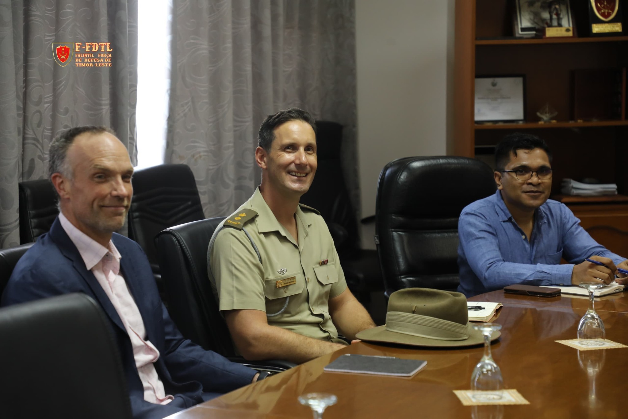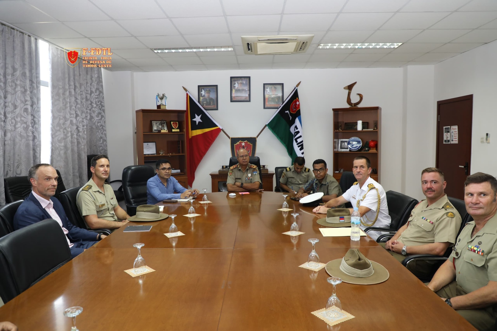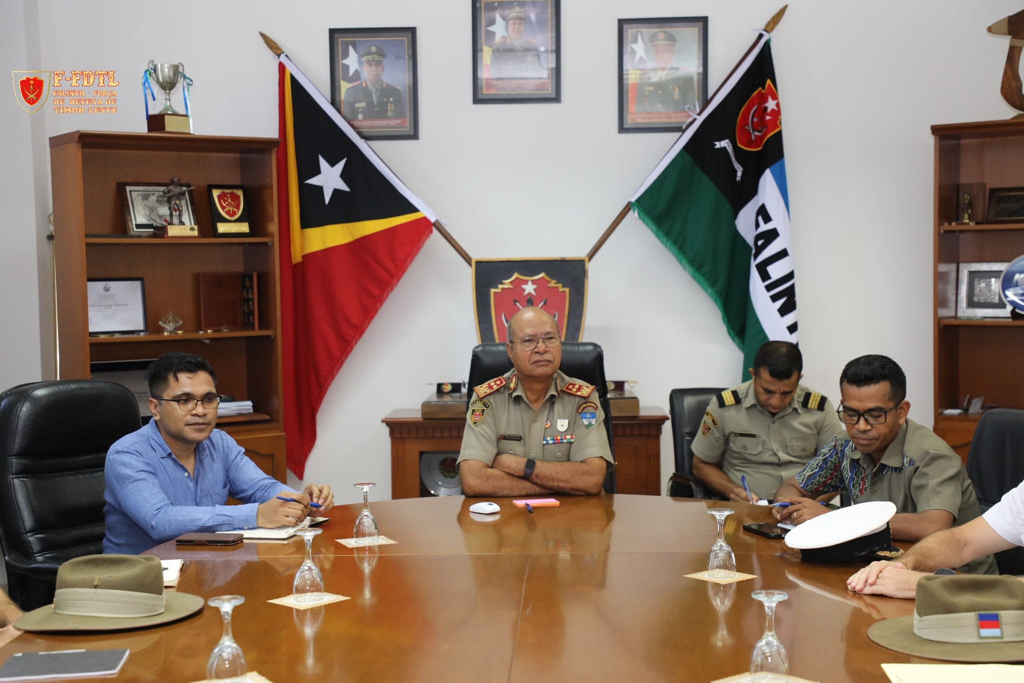 Xefe Estadu Maior Jenerál FALINTIL-Forsa Defeza Timor-Leste (F-FDTL) Tenente Jenerál Falur Rate Laek, simu vijita husi Adido Defesa Austrália bá Timor-Leste Kapitaun Mar e Guerra Matthew Richardson ho ekipa Defence Coorperation Program (DCP) iha kna'ar fatin Kuartel Jenerál Fatuhada, Dili.