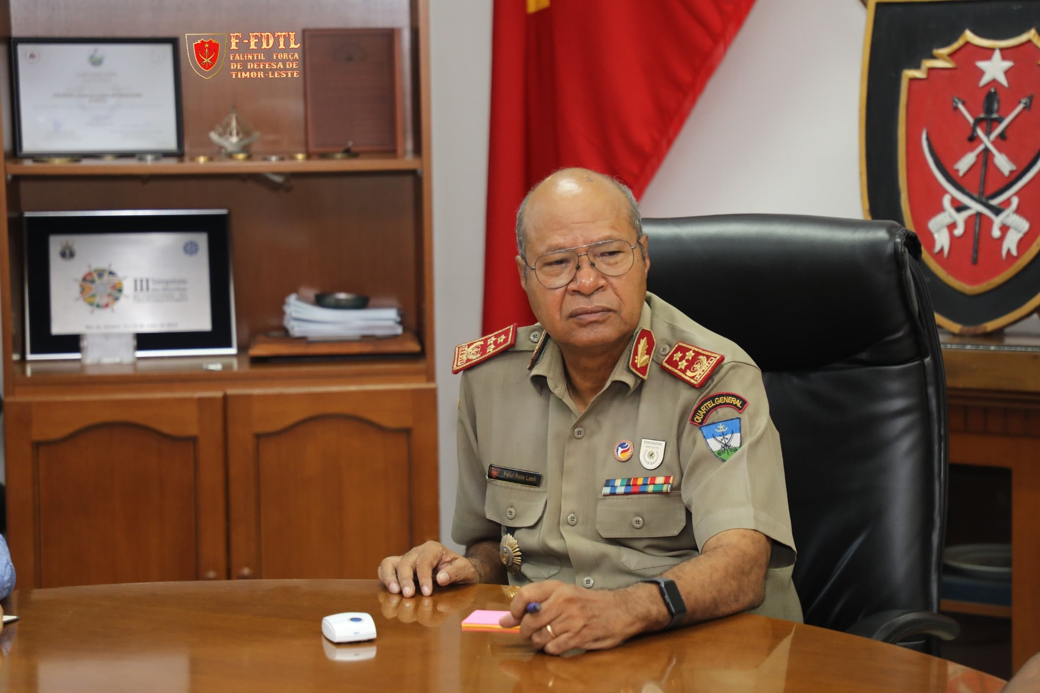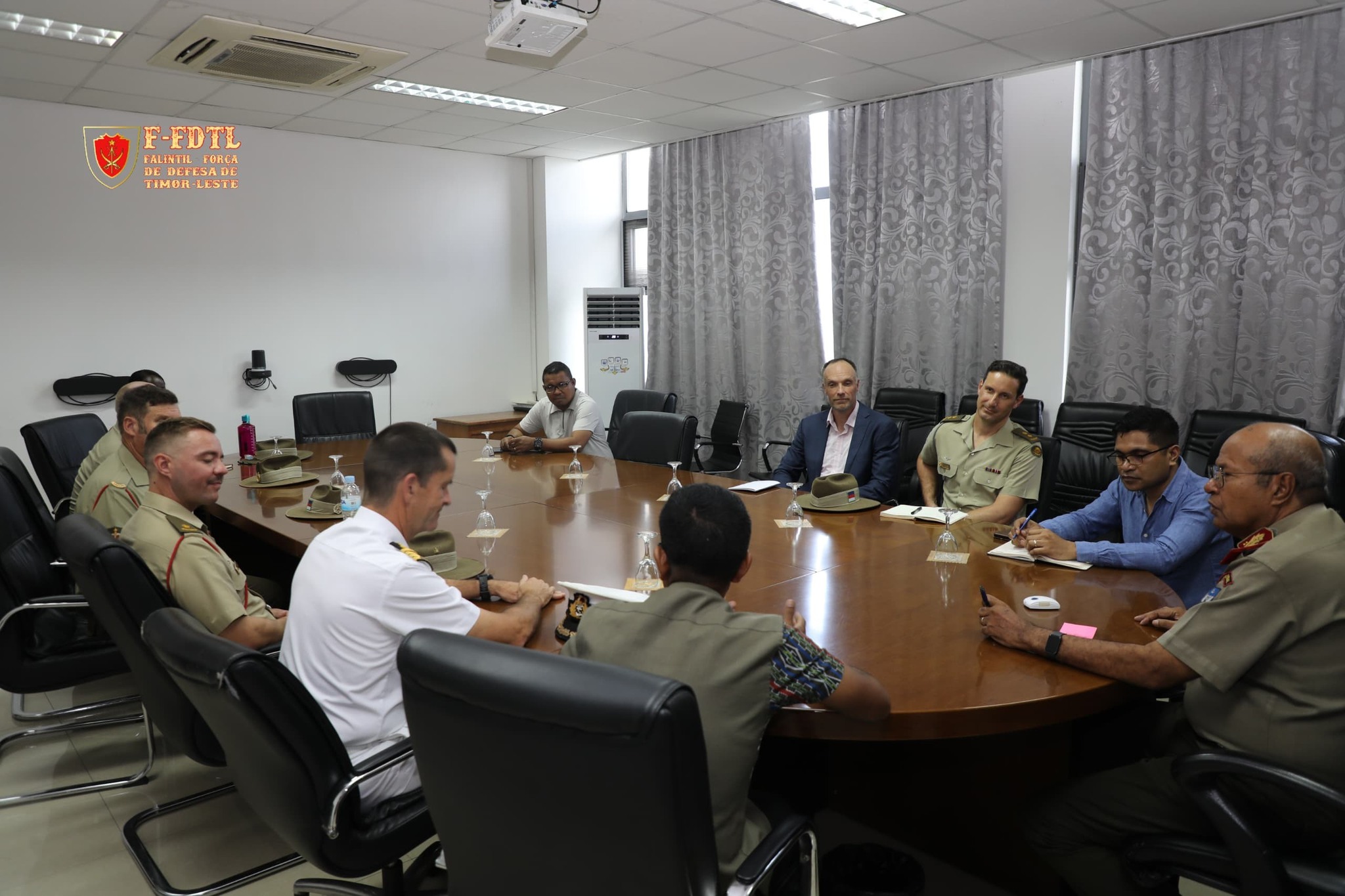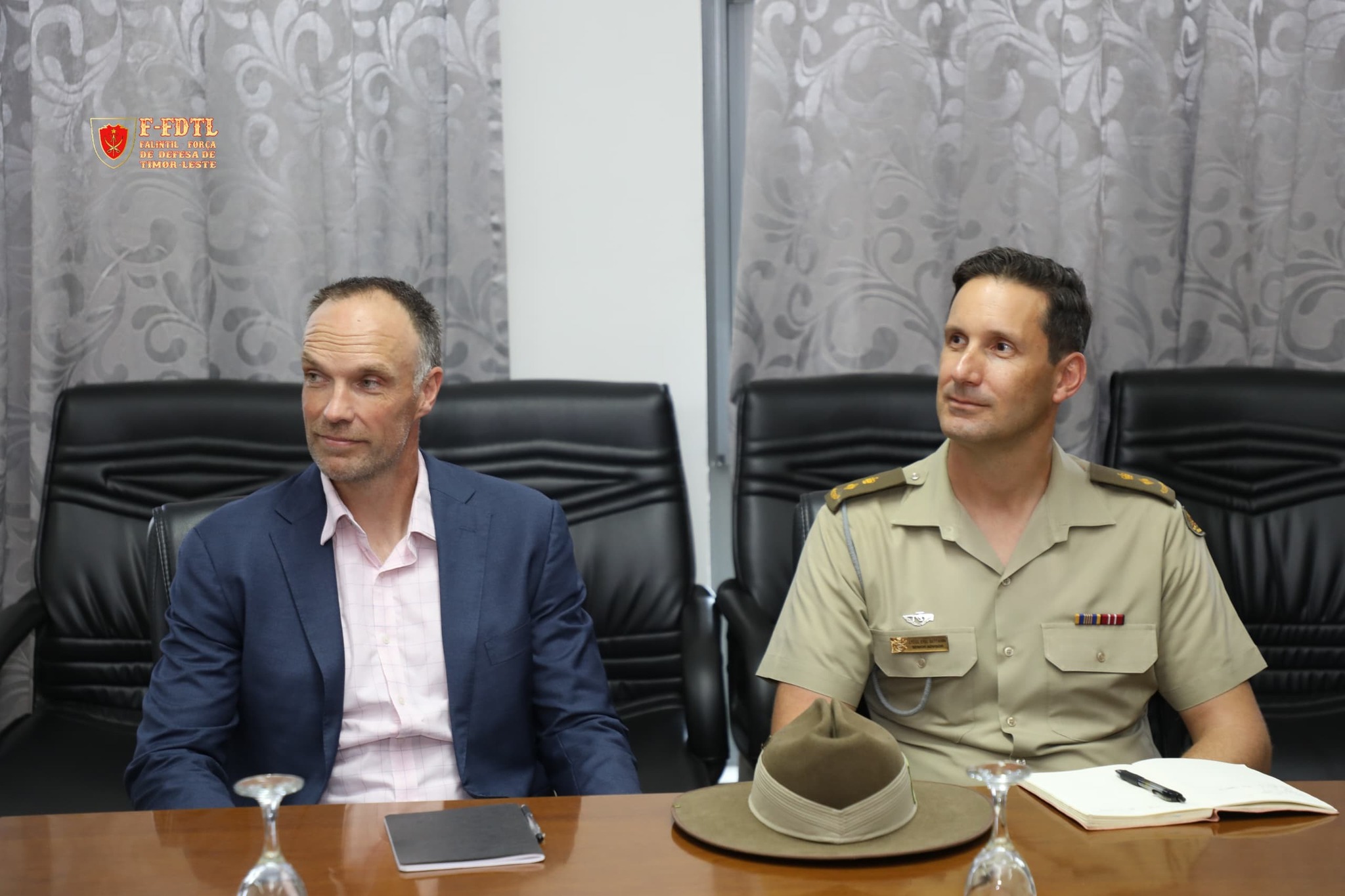 Xefe Estadu Maior Jenerál FALINTIL-Forsa Defeza Timor-Leste (F-FDTL) Tenente Jenerál Falur Rate Laek, simu vijita husi Adido Defesa Austrália bá Timor-Leste Kapitaun Mar e Guerra Matthew Richardson ho ekipa Defence Coorperation Program (DCP) iha kna'ar fatin Kuartel Jenerál Fatuhada, Dili.