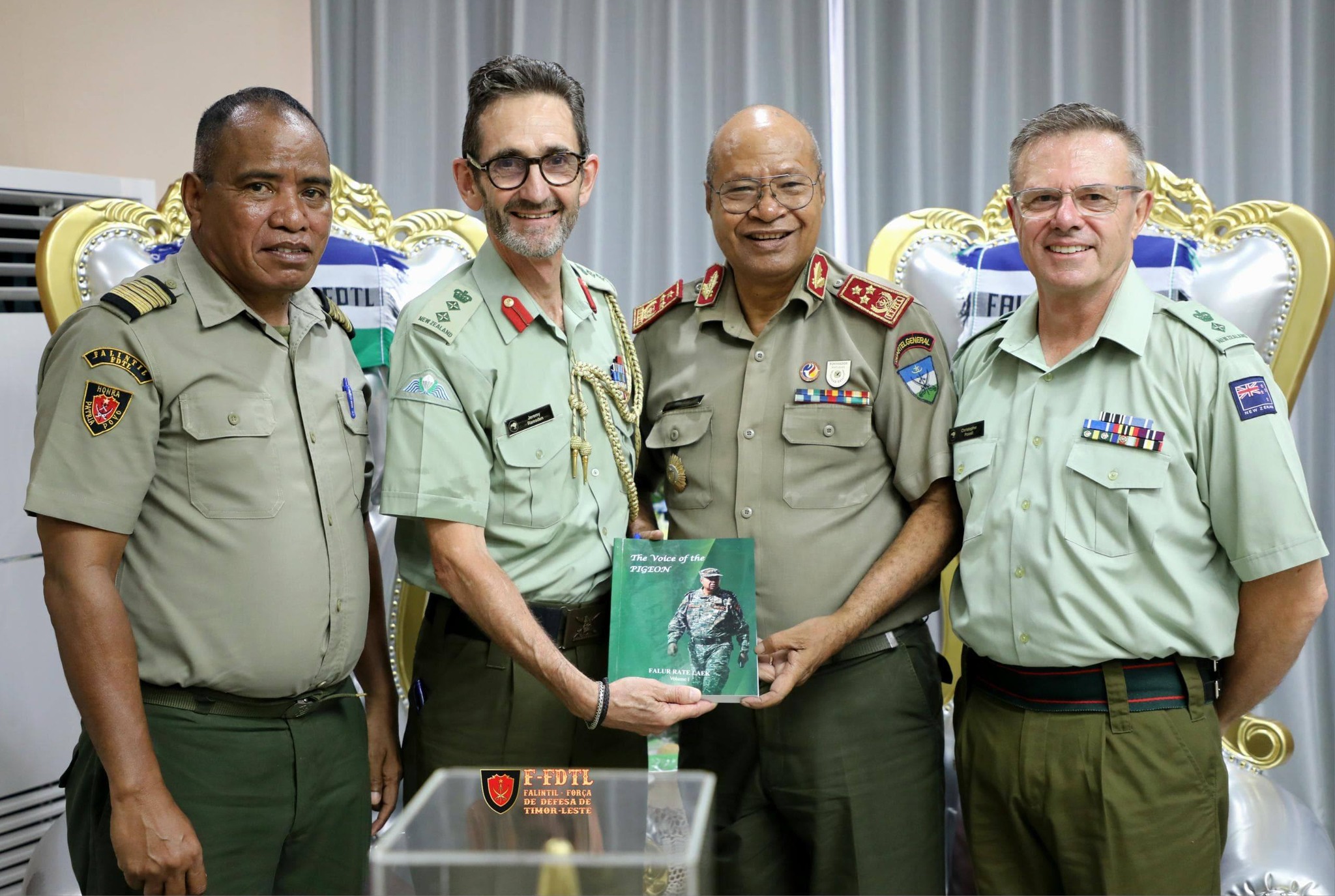 Xefe Estadu Maiór Jenerál Forsa Defeza Timor-Leste (F-FDTL) Tenente Jenerál Domingos Raúl "Falur Rate Laek" Simu Vijita Husi Adido Defeza Nova Zelándia Coronel Jeremy Ramsden.
