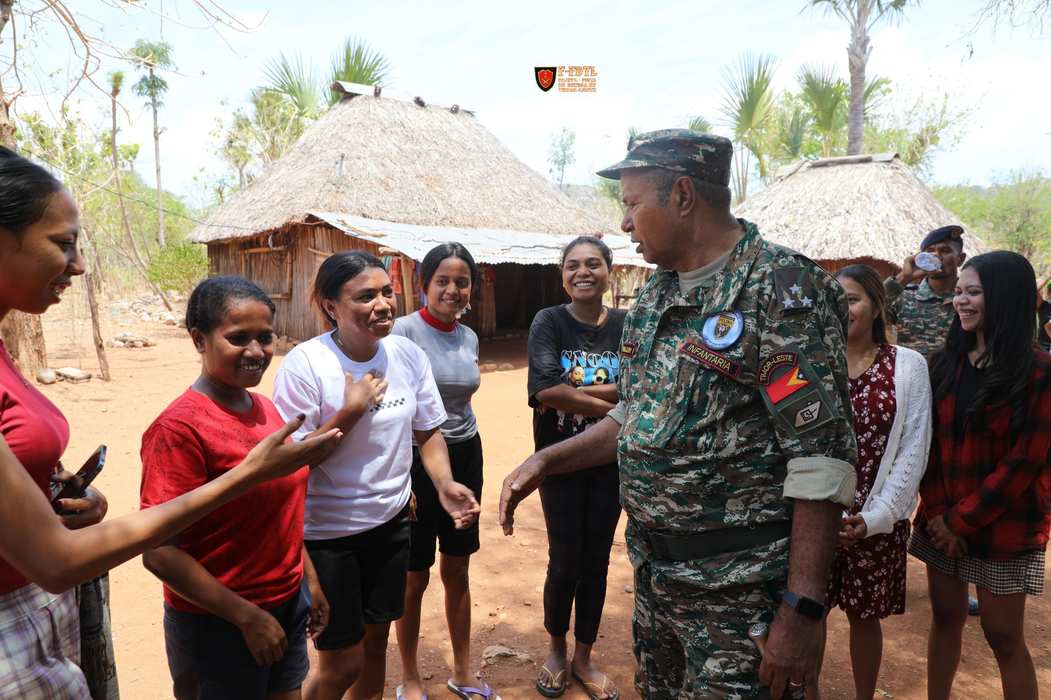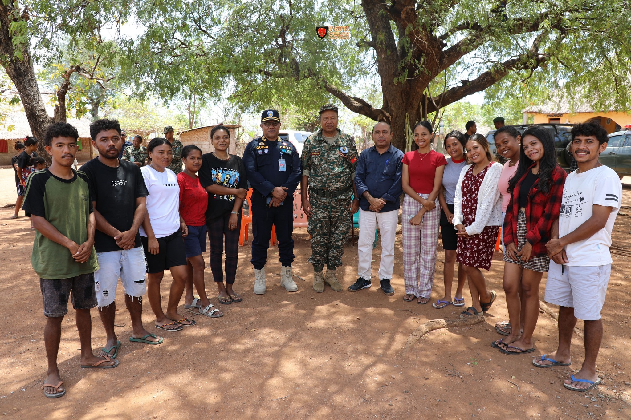 Iha tempo hanesan Xefe Estadu Maior Jenerál F-FDTL Tenente Jenerál Falur Rate Laek mós hasoru malu ho estudantes sira husi Universidade Nasionál Timor Loro Sa'e (UNTL) ne'ebé mak estajiu iha Aldeia Tula-Ika no hasai fotografia hamutuk.