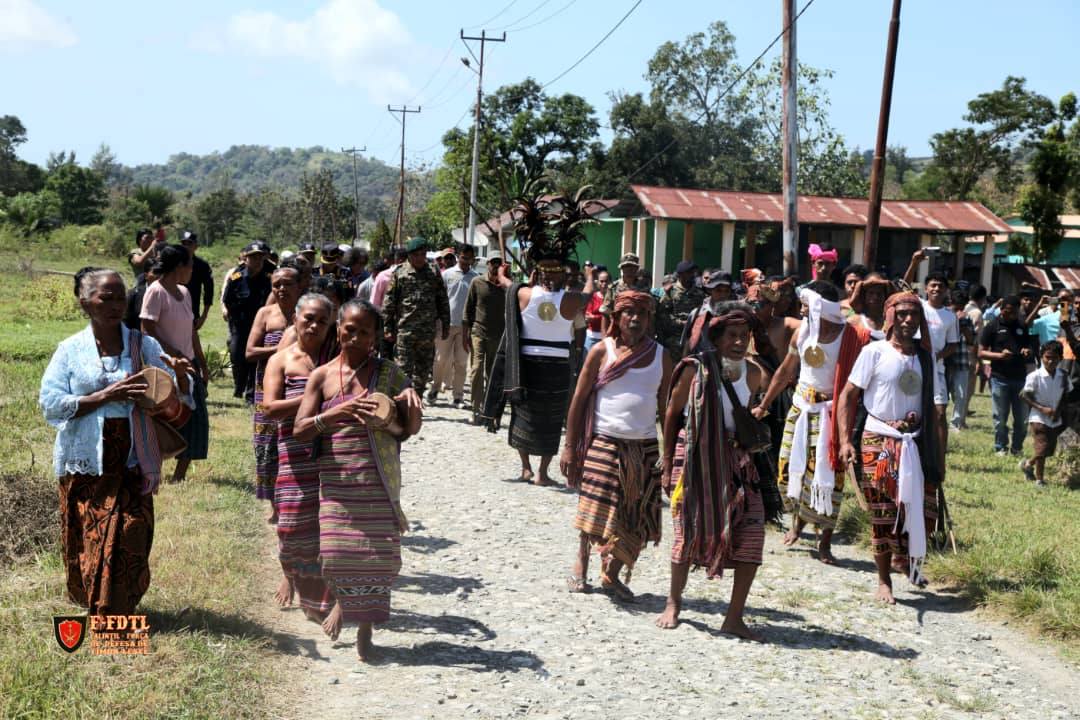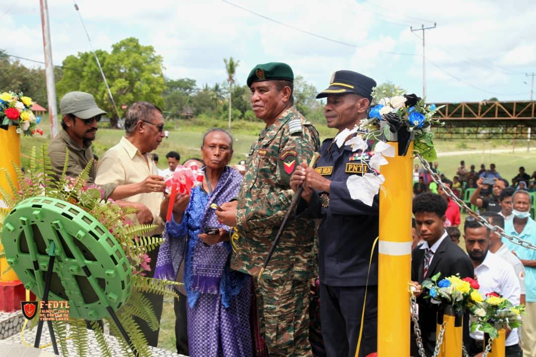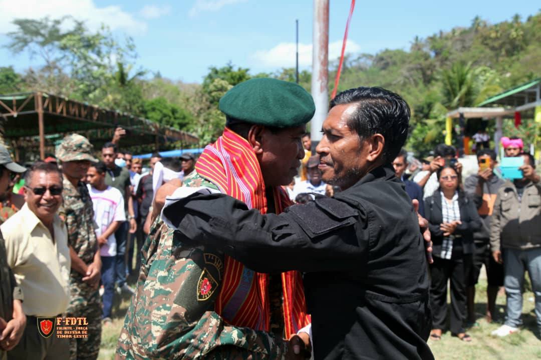 Xefe Estadu Maior Jenerál Forsa Armada Tenente Jenerál Domingos Raùl "Faur Rate Laek" Reprejenta husi Xefe Gabinete Xefe Estadu Maior Jenerál Koronel Marcelino Ximenes "Rizai" partisipa iha Serimónia Inagurasaun Estatua Saudozu Veteranu Augosto Fernandes"Sofre" iha Postu Admiminstrativu Alas, Munisípiu Manufahi.